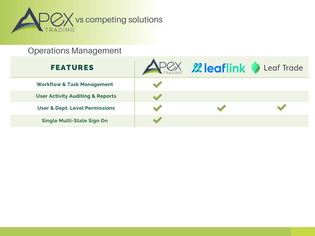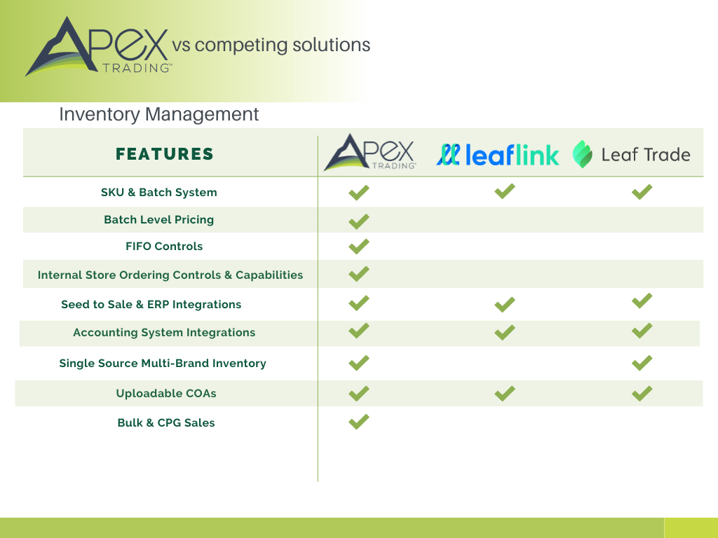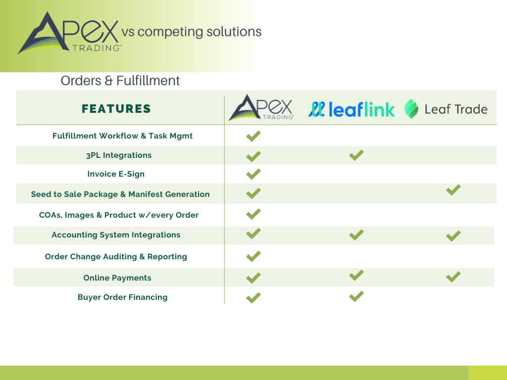 We don’t have all the answers, but we can provide some clarity with regard to which cannabis software platform is right for you. In this article we’ll be looking at our own platform, Apex Trading, and how it stacks up against two of the largest wholesale cannabis software providers, LeafLink and Leaf Trade.